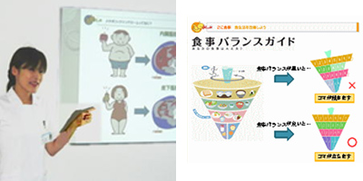 支援形態は、個別支援・グループ支援・通信支援に分かれており、メタボリックシンドロームを予防改善するために、運動面、食事面から支援を行います。運動についてはエクササイズガイド、食事についてはバランスガイドに基づき、対象者それぞれの生活習慣に合わせ、ご自身で生活改善できるよう支援を行います。
